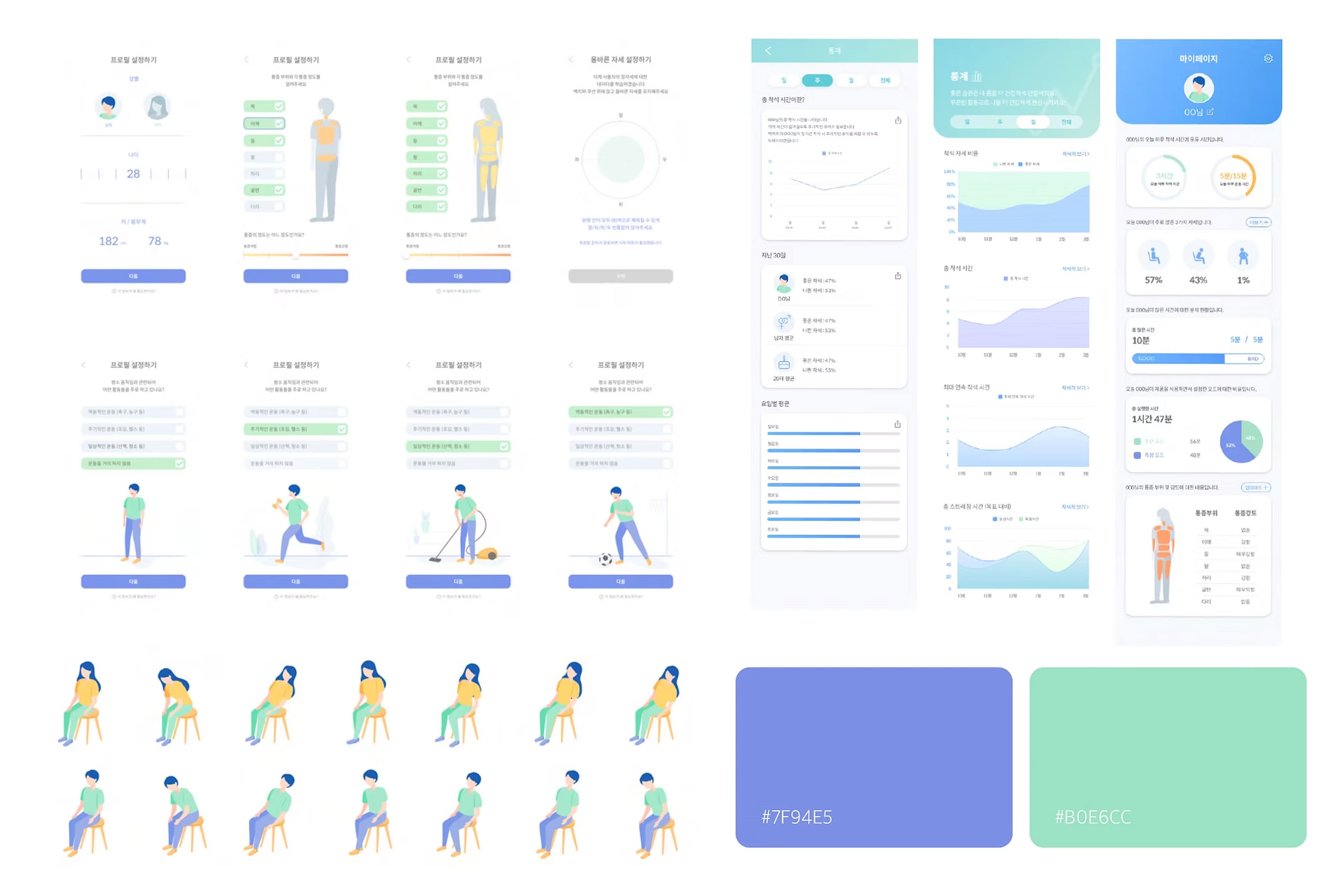 The next challenge was designing the software that connects to the device. At first, our goal was to make the app as engaging as possible — showing real-time animated posture feedback and offering a variety of detailed data visualizations. These features received enthusiastic responses during exhibitions and early demos. However, once the product launched through crowdfunding, we realized that the app’s constant alerts and interactive elements were becoming distractions in users’ daily routines. This led us to redefine the experience entirely. Instead of pulling users into the app, we designed it to stay quietly in the background — focused on essential functions such as device calibration, posture tracking, and simple summaries of sitting habits.